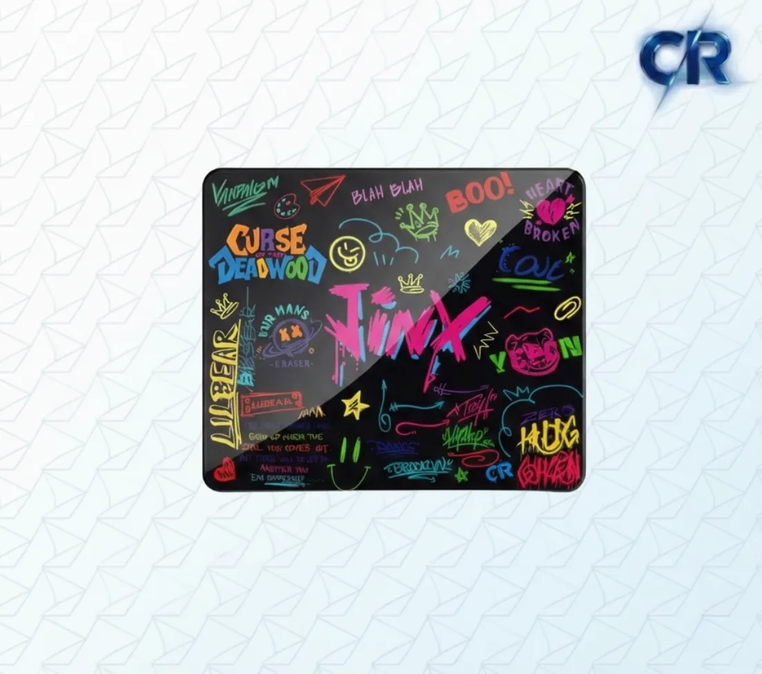 - ماوس باد زجاجي (الطول 45 سم × العرض 40 سم × السمك 3.5 ملم): سطح انسيابي فائق السرعة والدقة، مقاوم للخدوش ويعطيك تحكم مثالي في كل حركة.
